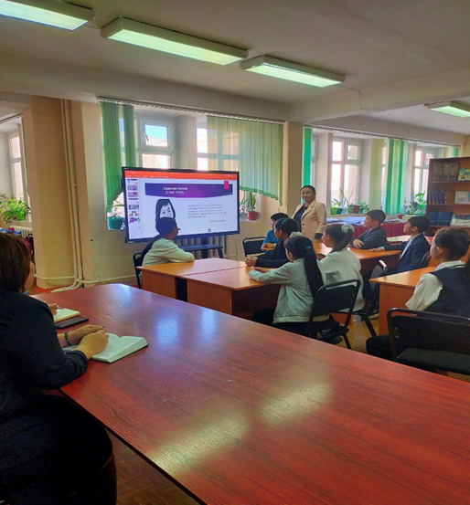 Ж.Еділбаев атындағы N18 мектеп - гимназиясы кітапхананың 7 сынып оқырмандарына 24.01.2024ж Өр Алтайдың асқақ жазушы Оралхан Бокейдің 80 жыл толу мерейтойына орай оқу сағаты өткізілді.