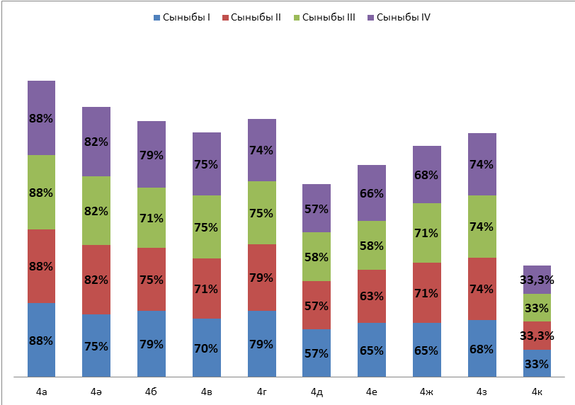 4 | 3в | 24 | 4 | 13 | 7 | 3,8 | 68% | 69% | 71% | 70% | Г.Қаражанова |