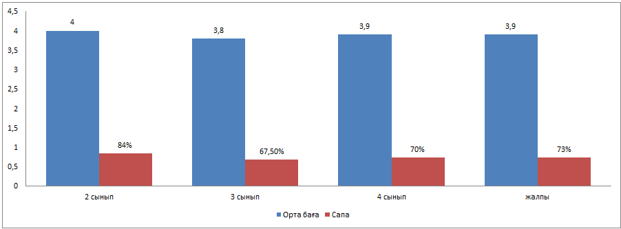 3 сынып | 186 | 39 | 93 | 53 | 3,8 | 67,5% |