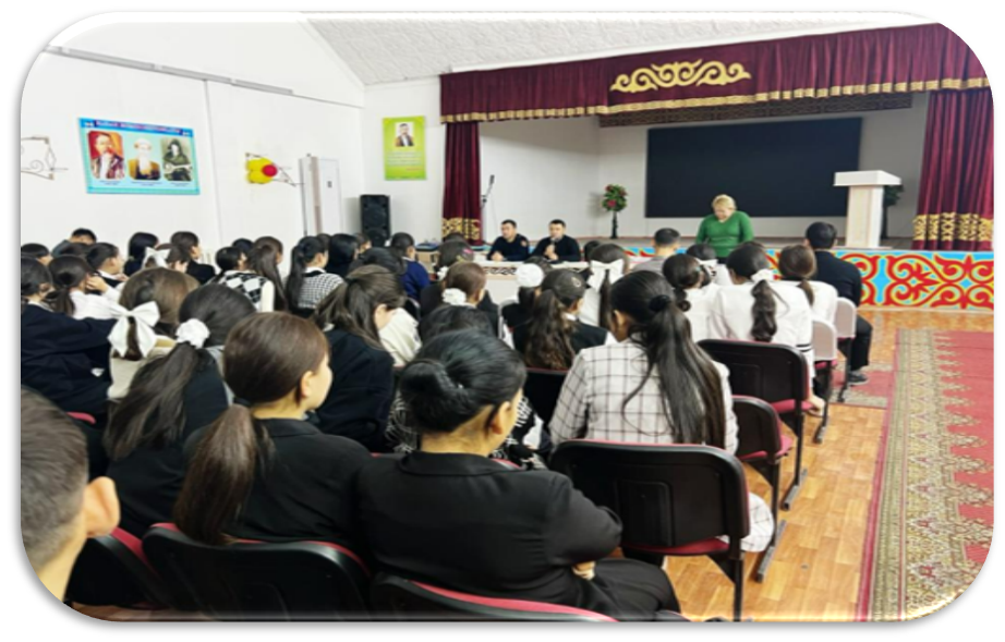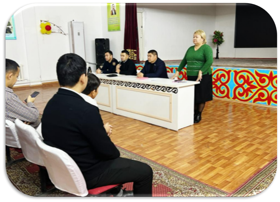 мектептерінде оры алган кукыкбұзушылык әрекеттер туралы айта отырып, оқушыларға келенсiз жағдайлардың алдын-алу жұмыстарын насихаттады.