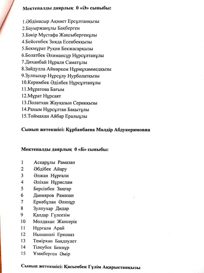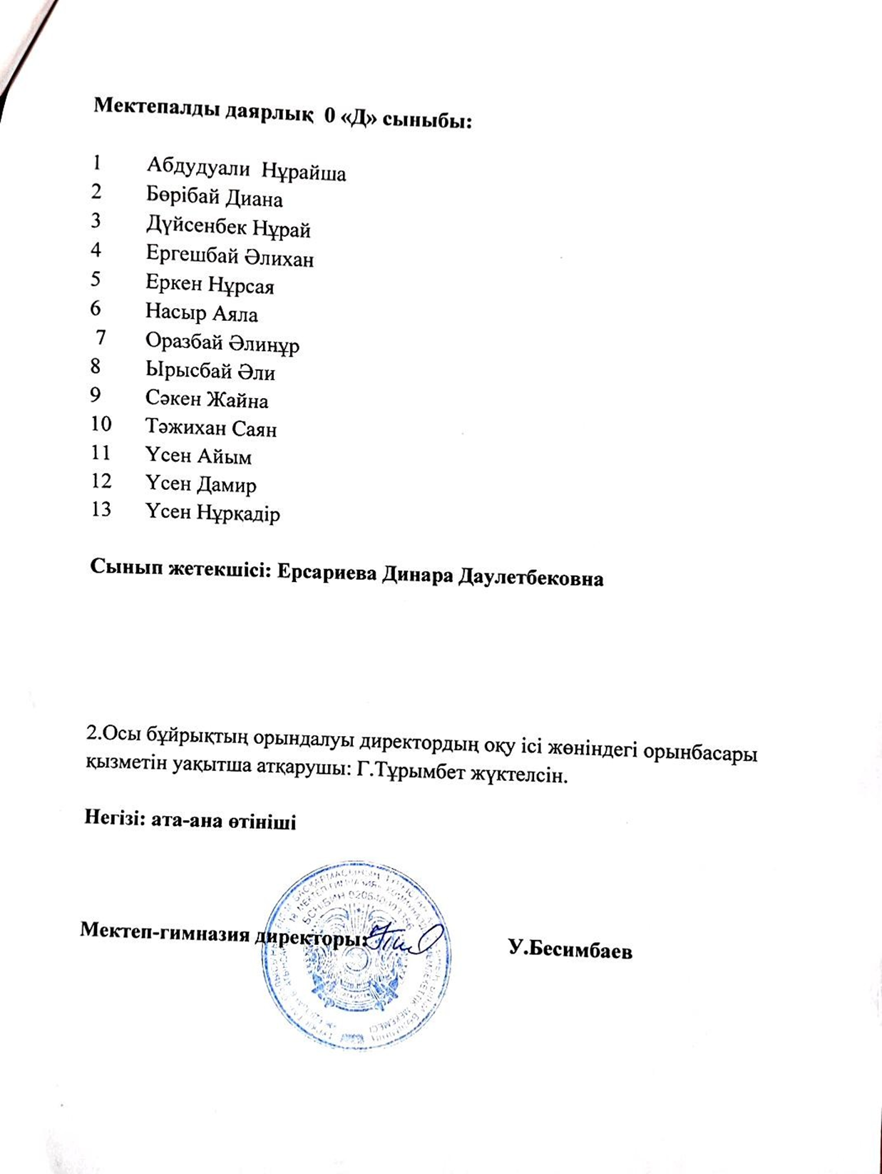 Мектепалды даярлық сыныптарды ашу туралы бұйрық » Ж.Еділбаев атындағы №18 мектеп-гимназия