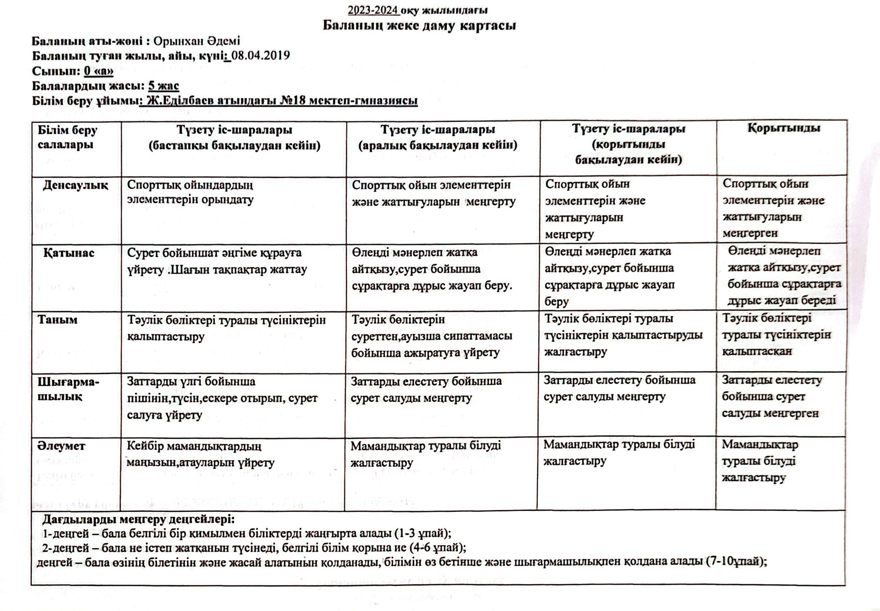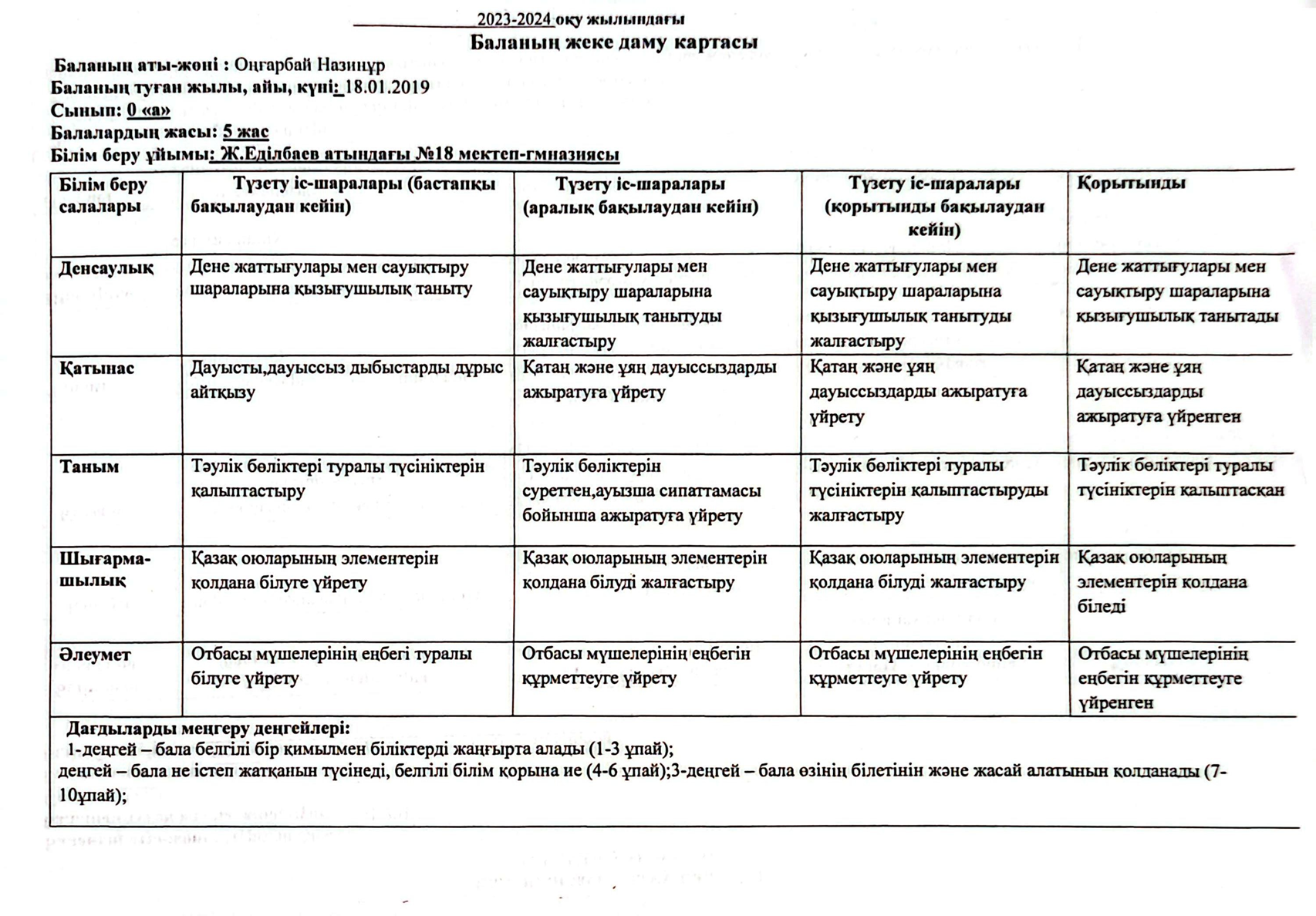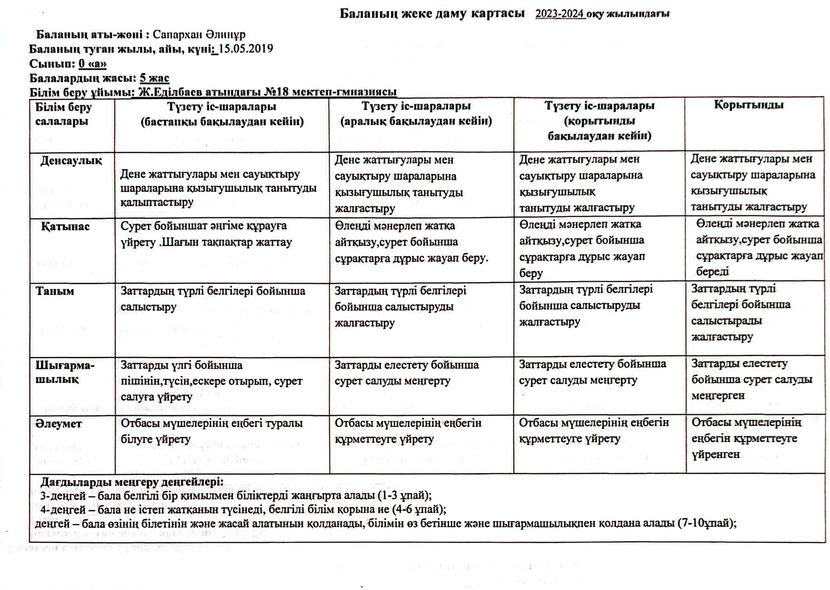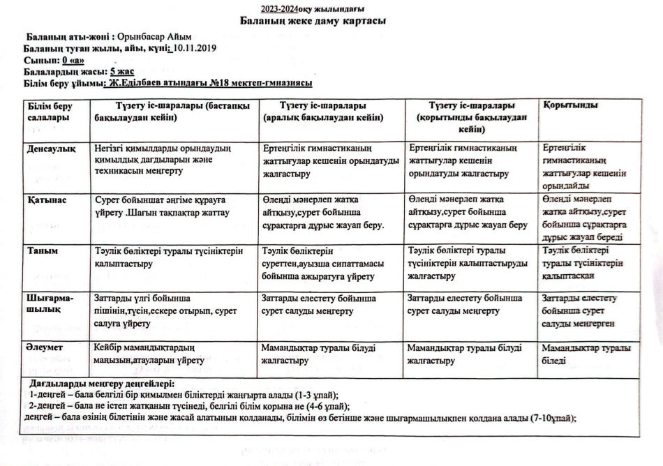 » » » 2023-2024 оқу жылындағы Мектепалды баланың даму картасы