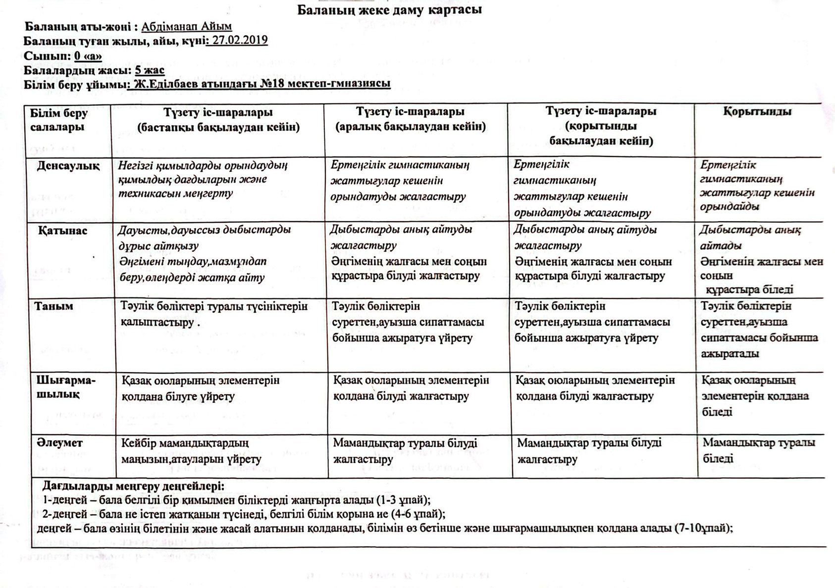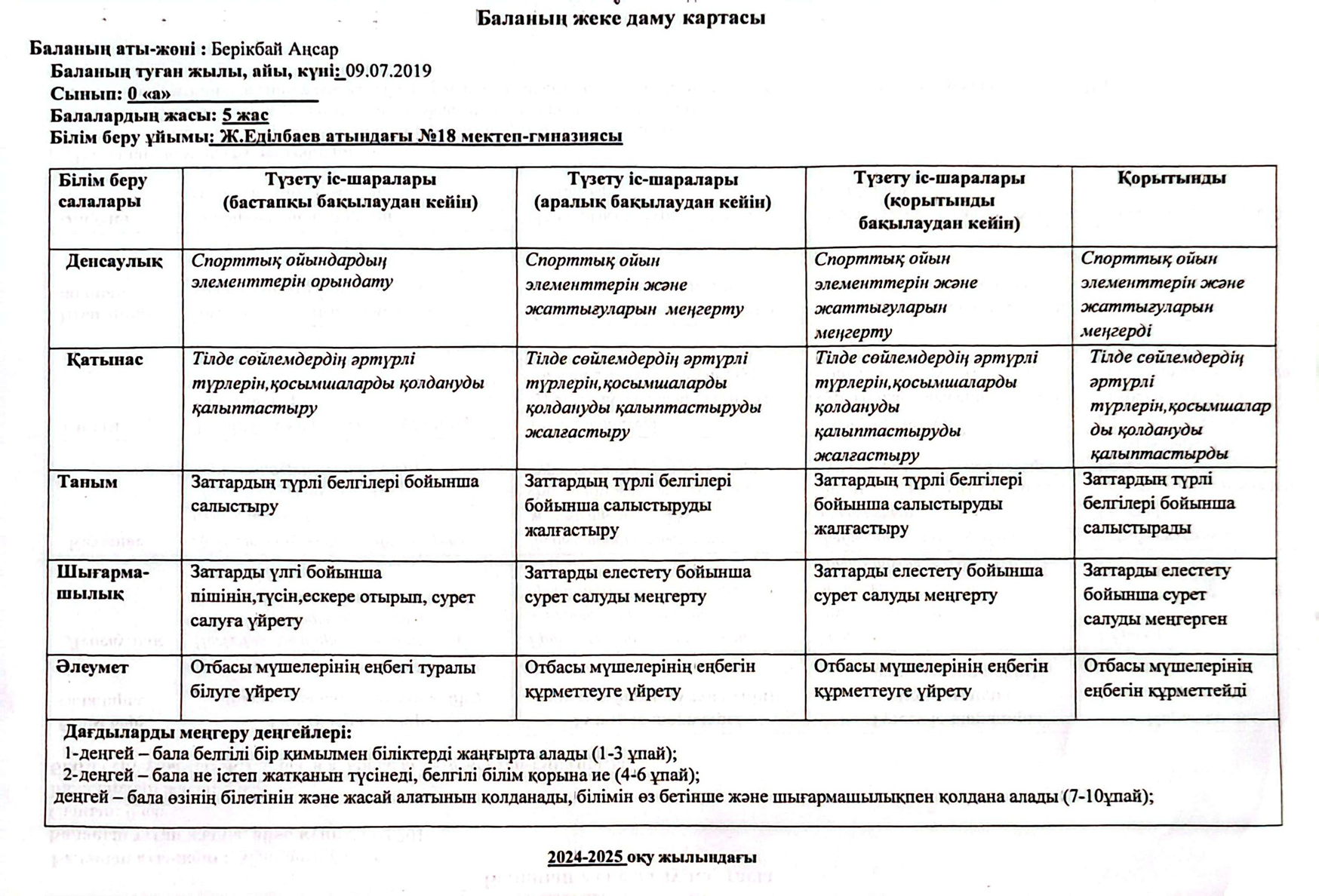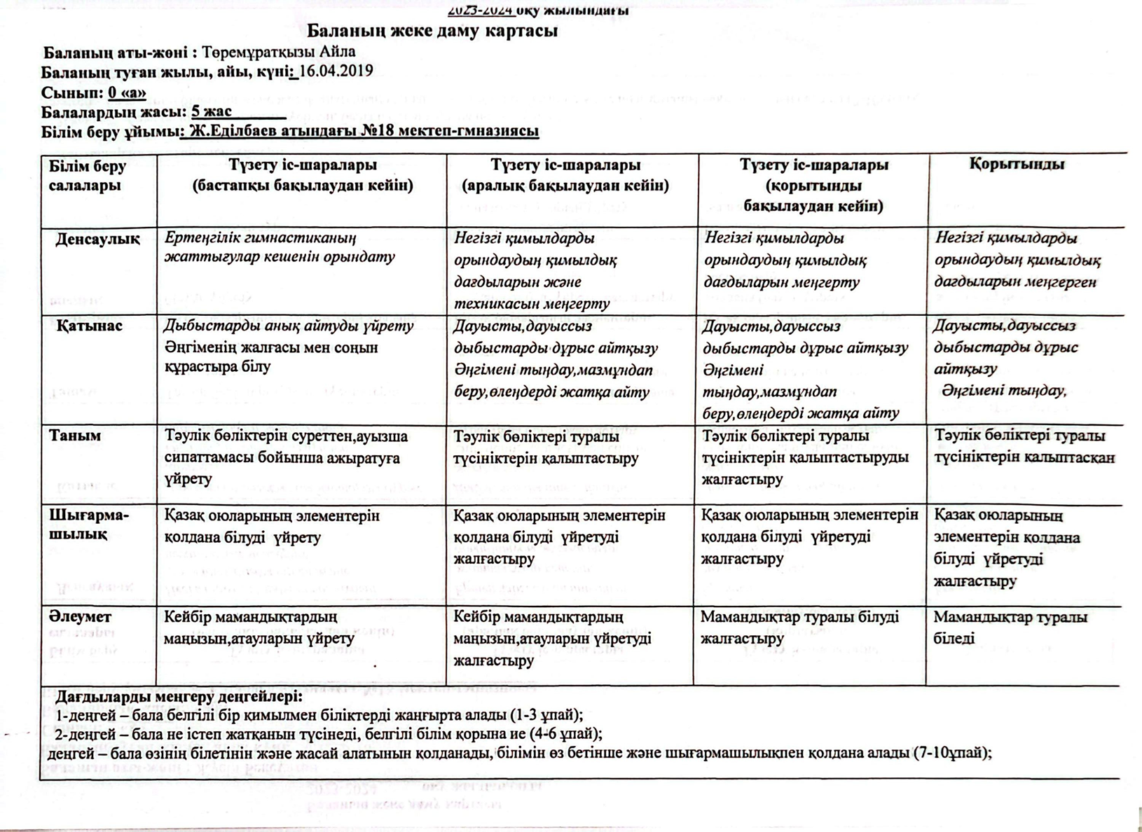 » » » 2023-2024 оқу жылындағы Мектепалды баланың даму картасы