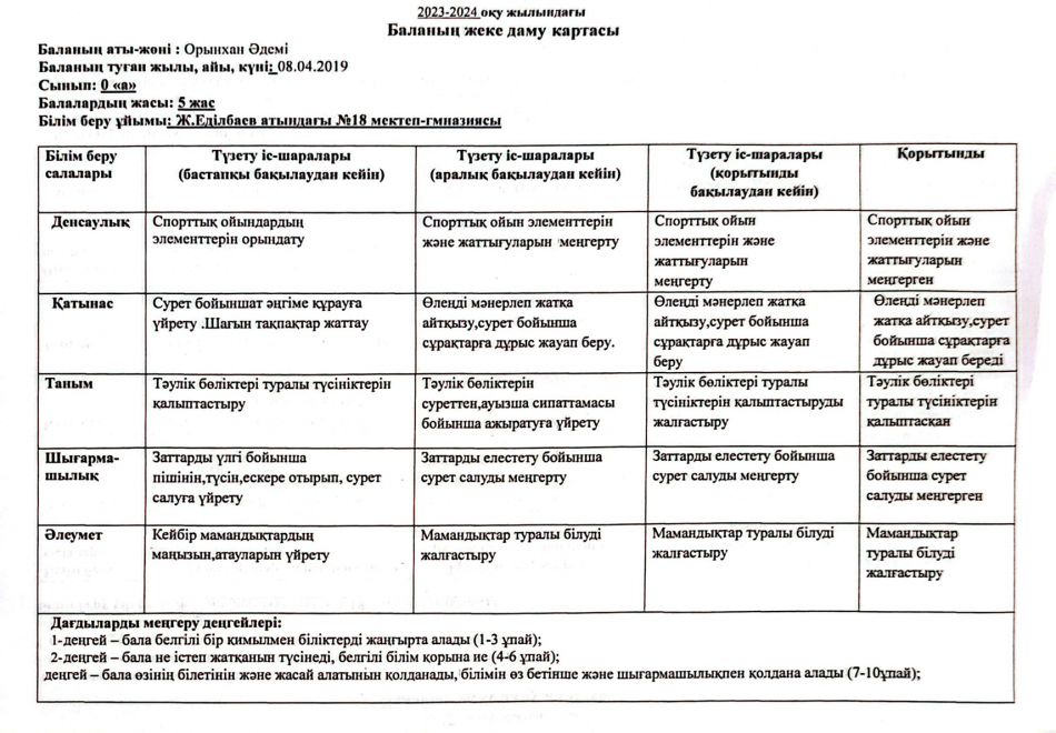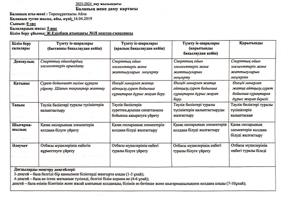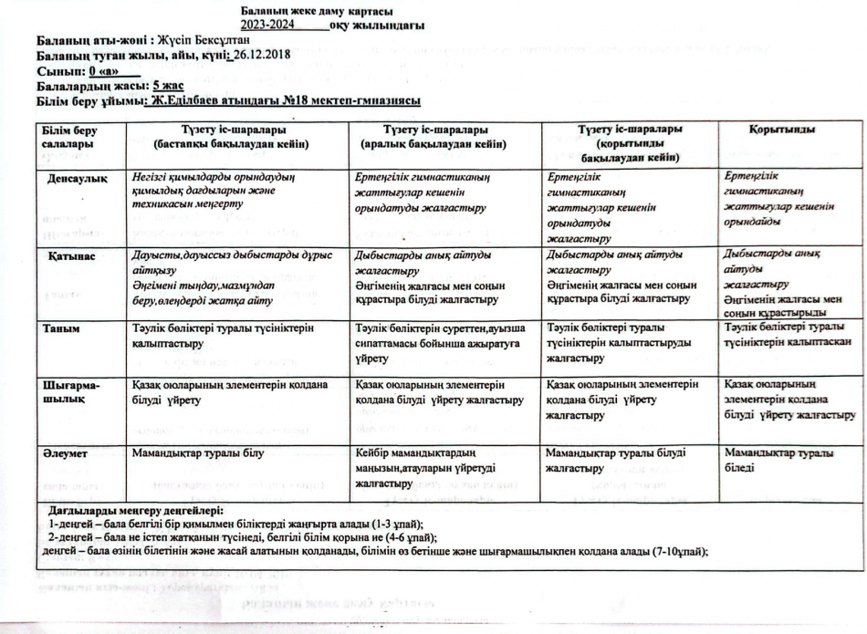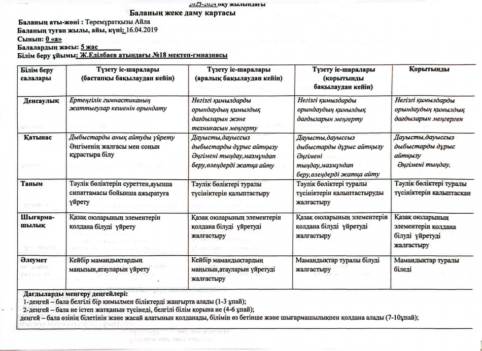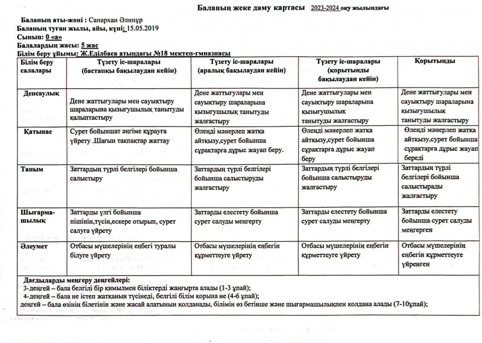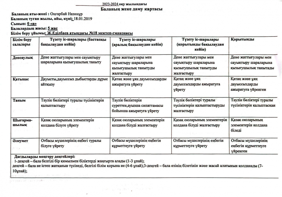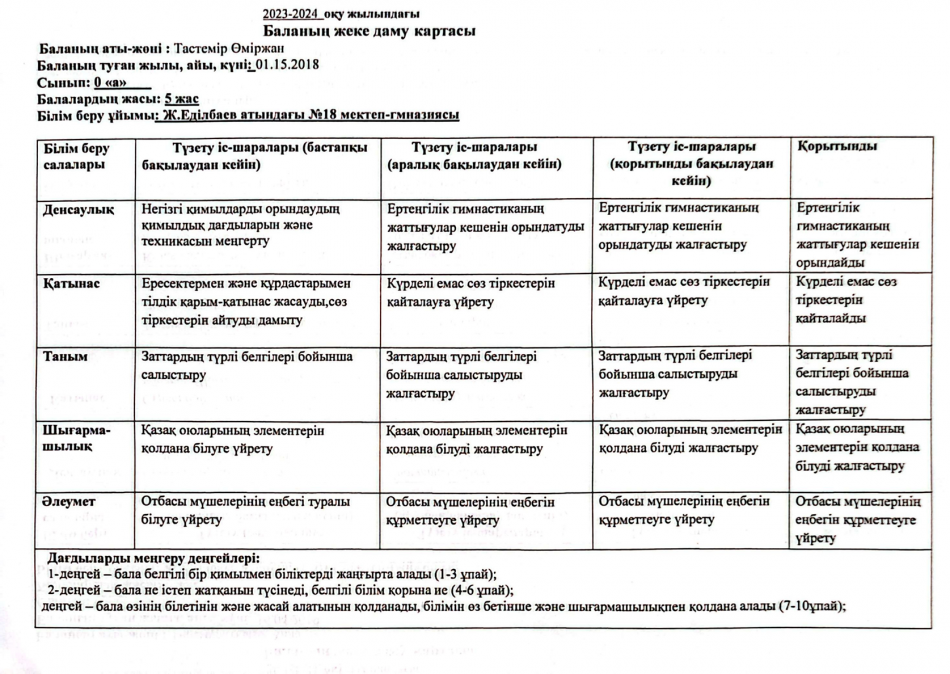 2023-2024 оқу жылындағы Мектепалды баланың даму картасы » Ж.Еділбаев атындағы №18 мектеп-гимназия