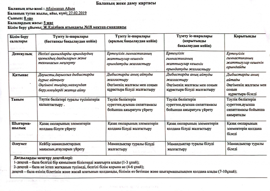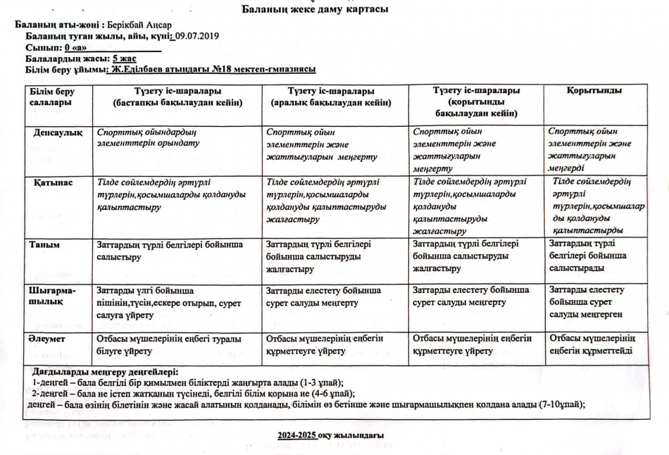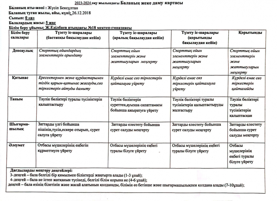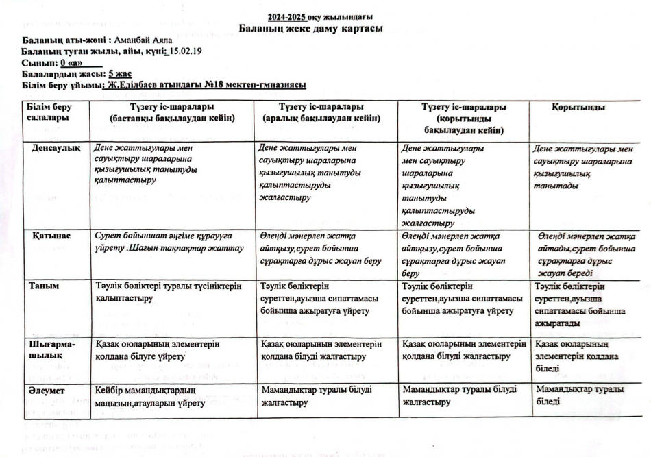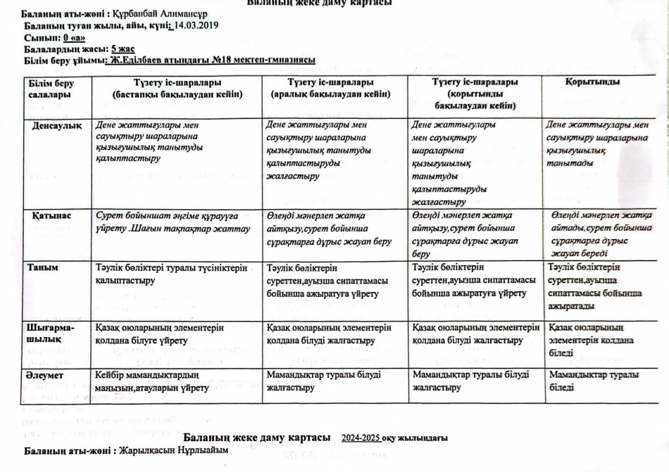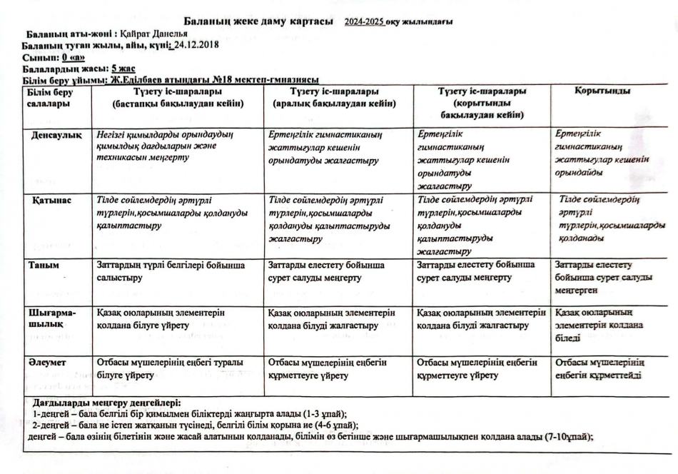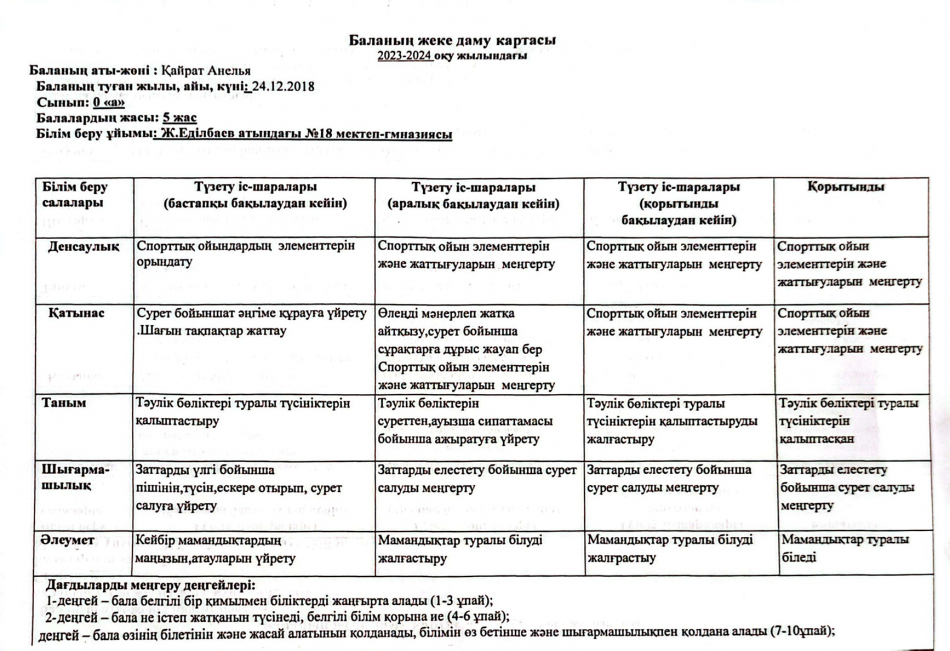 2023-2024 оқу жылындағы Мектепалды баланың даму картасы » Ж.Еділбаев атындағы №18 мектеп-гимназия