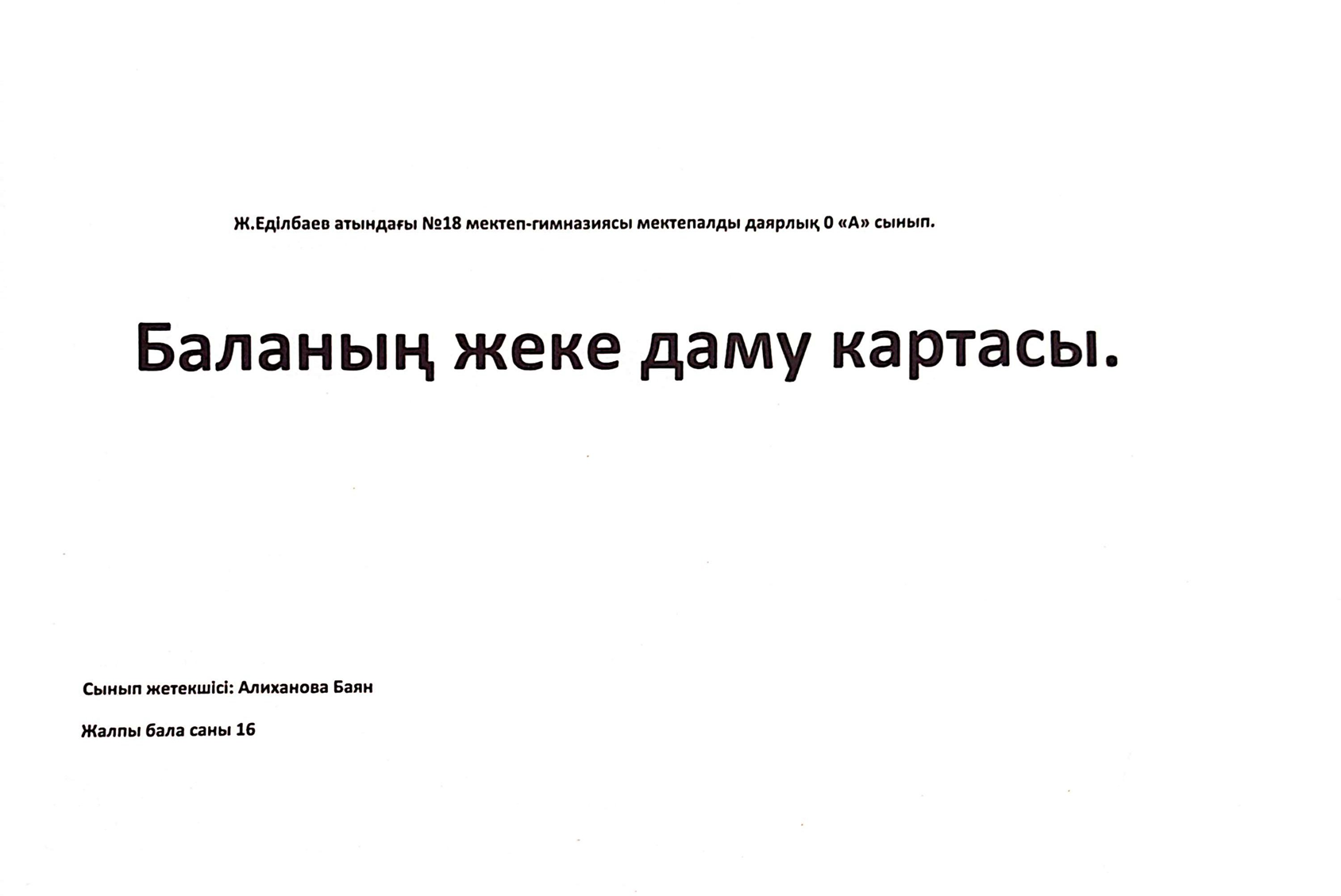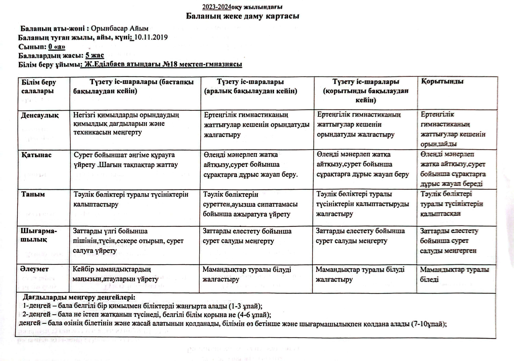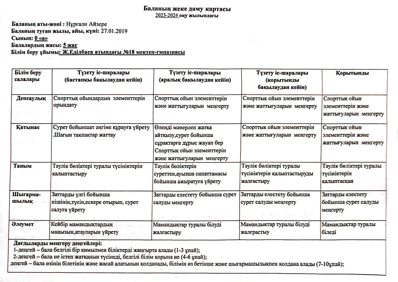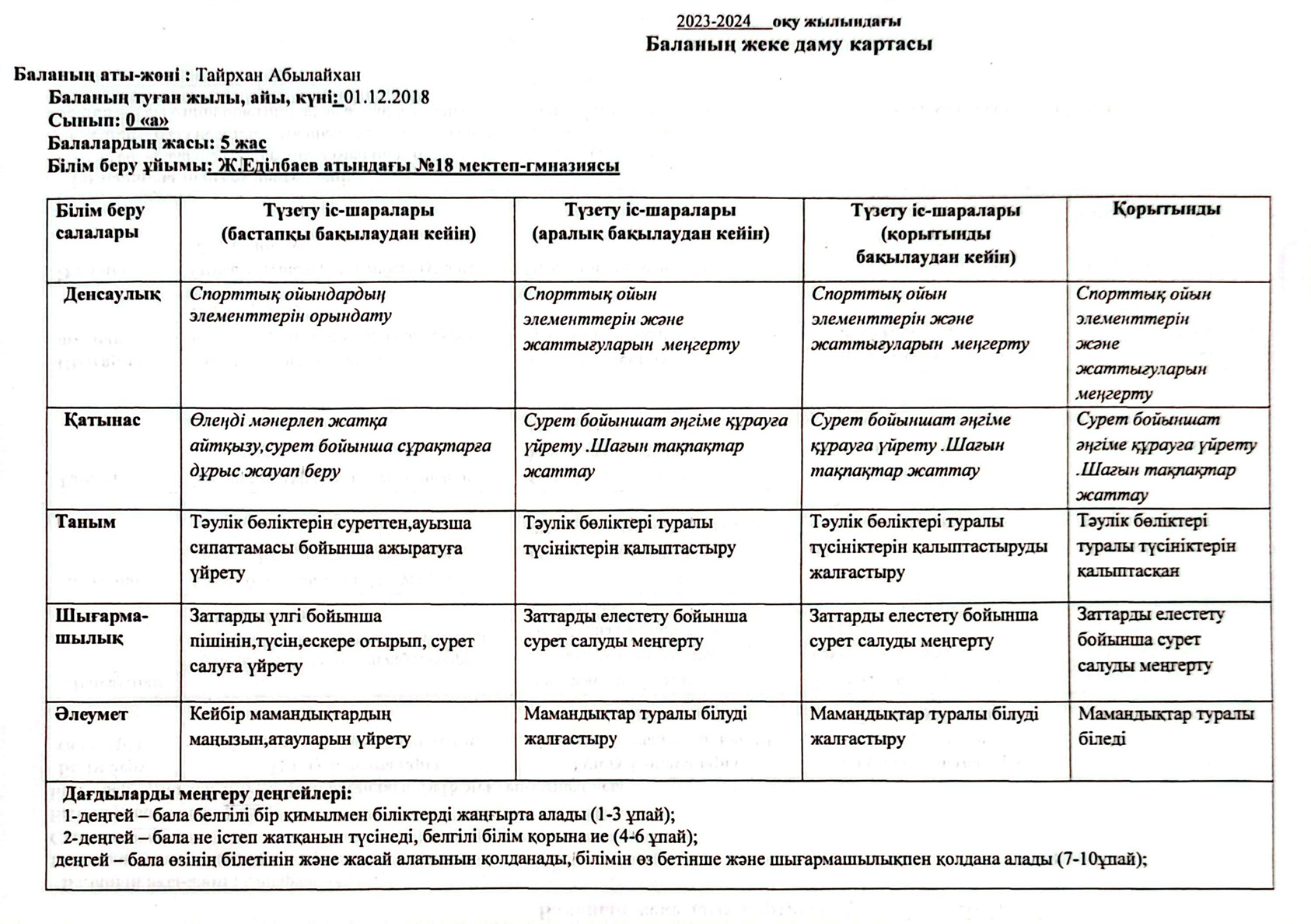 2023-2024 оқу жылындағы Мектепалды баланың даму картасы » Ж.Еділбаев атындағы №18 мектеп-гимназия