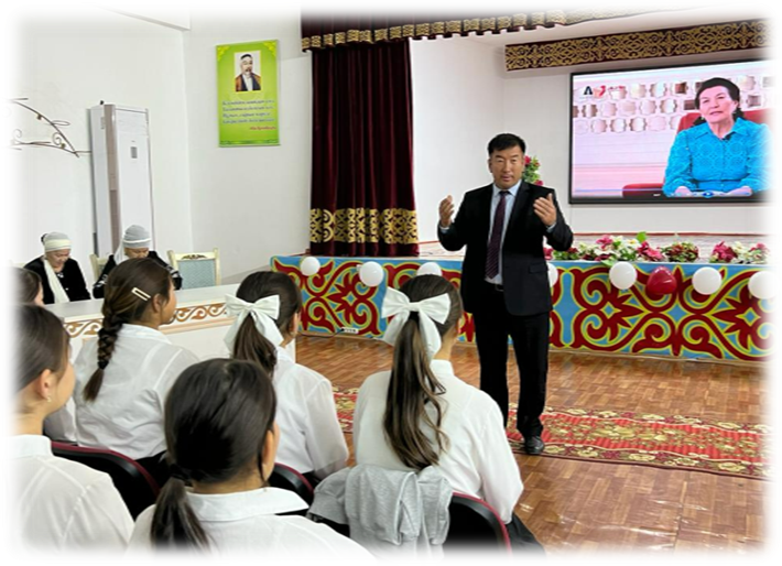 Ж. Еділбаев атындағы № 18 мектеп -гимназиясында "Менің отаным, менің отбасым" тақырыбында 12.10.2023 ж күні мектебіміздің қыздарымен және Түркістан қаласының әжелер алқасының төрайымы, ҚР еңбек ардагері және зейнеткер ұстаз Серім Айғаным апайымыз, зейнеткер ұстаз әжелер ұйымының мүшесі Мұстафаева Сиякүл аналарымызбен кездесу өтті. Мектебіміздің директоры Бесимбаев Уалихан Қамбарұлы кездесуді ашып берді. Директордың тәрбие ісі жөніндегі орынбасары Оразгелдиева Нағима апай осы тақырыпқа байланысты баяндама оқып, келген қонақтарымыз Айғаным апайымыз бен Сиякүл апамызға сөз берді. Сөз барысында қыздың бойындағы ізеттілік, қазақы құндылықтарды жете айтып түсіндірді. Адам баласына көрегенділік оның нәресте кезінен ана сүтімен бойына сіңген. Қатты айқалап сөйлемеу, үлкеннің жолын кеспеу, ыдыс-аяқты сылдырлатпау, үлкендерден жоғары отырмау тәрізді тіпті қыз баланың отырысына, жүрісіне, киім киісіне дейін мән берілген. Әрбір қыз балаға ата-анасы туыс, ұстаз сыйлап, қадірлей білуді үйретсе, болашақта одан елін, жерін, халқын сүйетін, өз шаңырағын ардақтайтын, балаларына қамқор ана шығатыны сөзсіз -деп өздерінің өсиетті сөздерін айтты. Мектебіміздің психологтары Мөлдір апай мен Айгерім апай қыздармен трениг өткізді. Кездесу соңында өз өнерімен мектебіміздің музыка пәнінің мұғалімі Сапарбеков Біржан аналарымыздың құрметіне «Анашым сен қартаймашы» керемет әнін шырқады. Қорытындылай келгенде, бүгінгі кездесуден қыздар тағлымы мол көп дүние алды.