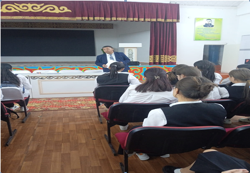 Түркістан обылысының дін істері басқармасының «Дін мәселелерін зерттеу орталығы» КММ-нің дінтанушы - теолог маманы Айдана Сейдуәлі қатысуымен 2024 жылдың 24 қыркүйек күні «Шетелде діни білім алудың қауіптілігі» тақырыбында Түркістан қаласы Ж.Еділбаев атындағы №18 мектеп-гимназиясы оқушылар ақпараттық түсіндірме жұмыстарын жүргізіп, кездесу өткізілді. Жиналыс барысында 8-10 сынып қыз балалары қамтылды. Директордың тәрбие ісі жөніндегі орынбасары Тлеубеков Бексұлтан ағай, Оразгелдиева Нағима апай және мектеп психологтары қатысты. Директордың тәрбие ісі жөніндегі орынбасары Тлеубеков Бексұлтан жиналыс барысын ашып беріп дінтанушы - теолог маманы Айдана Сейдуәлі ханымға сөз берді.