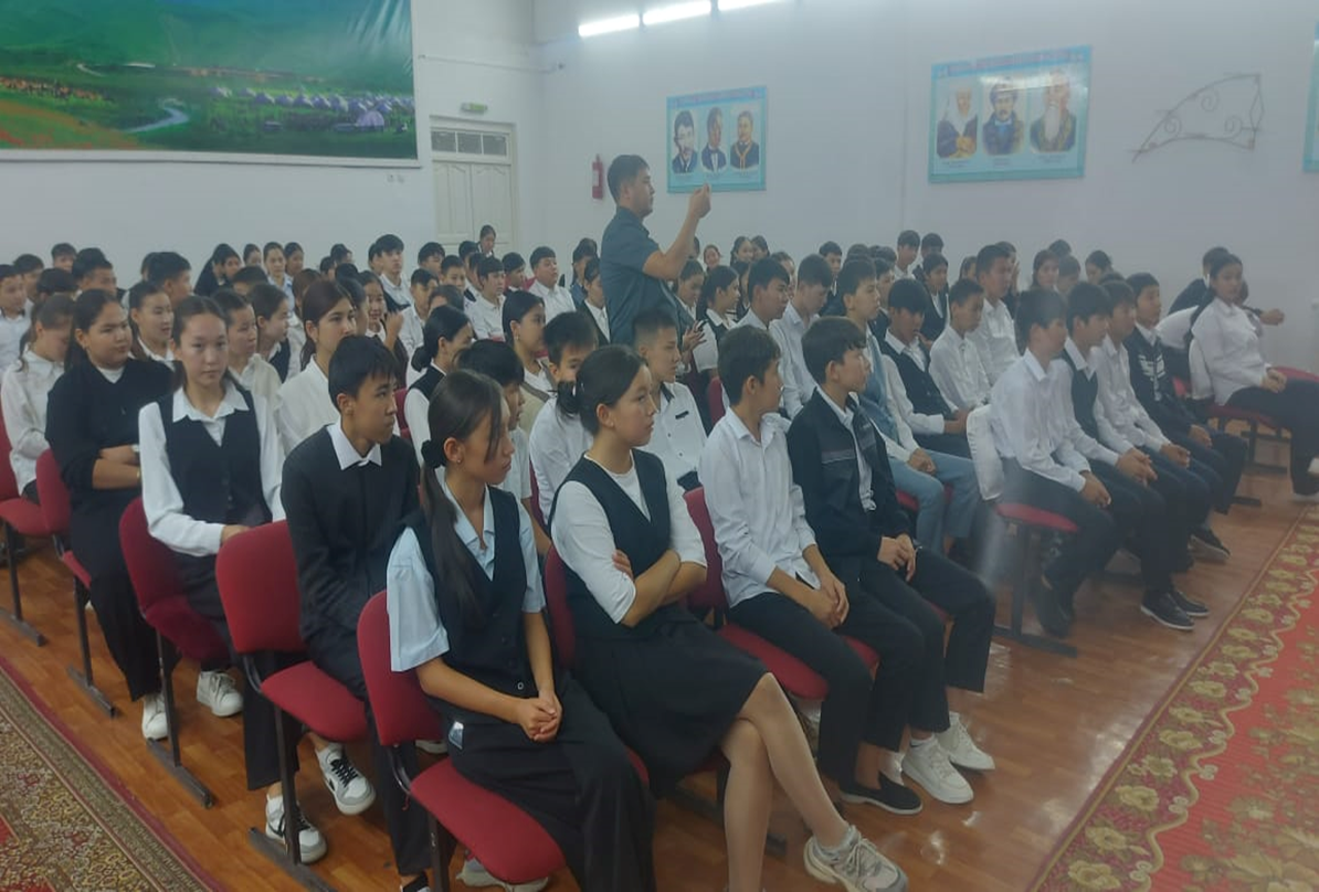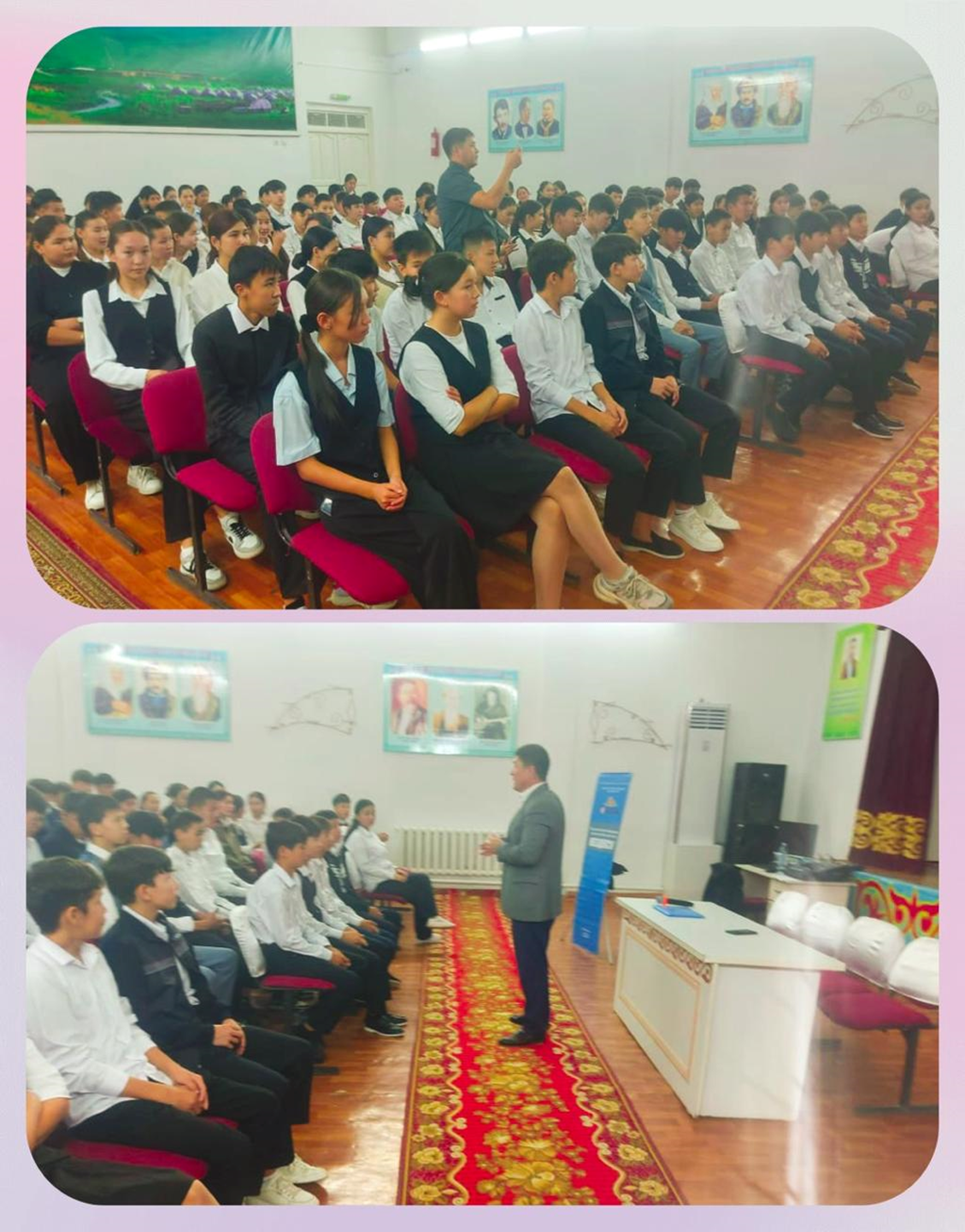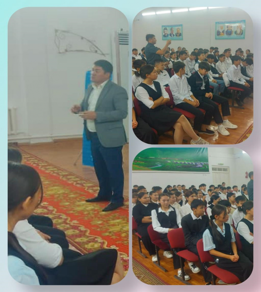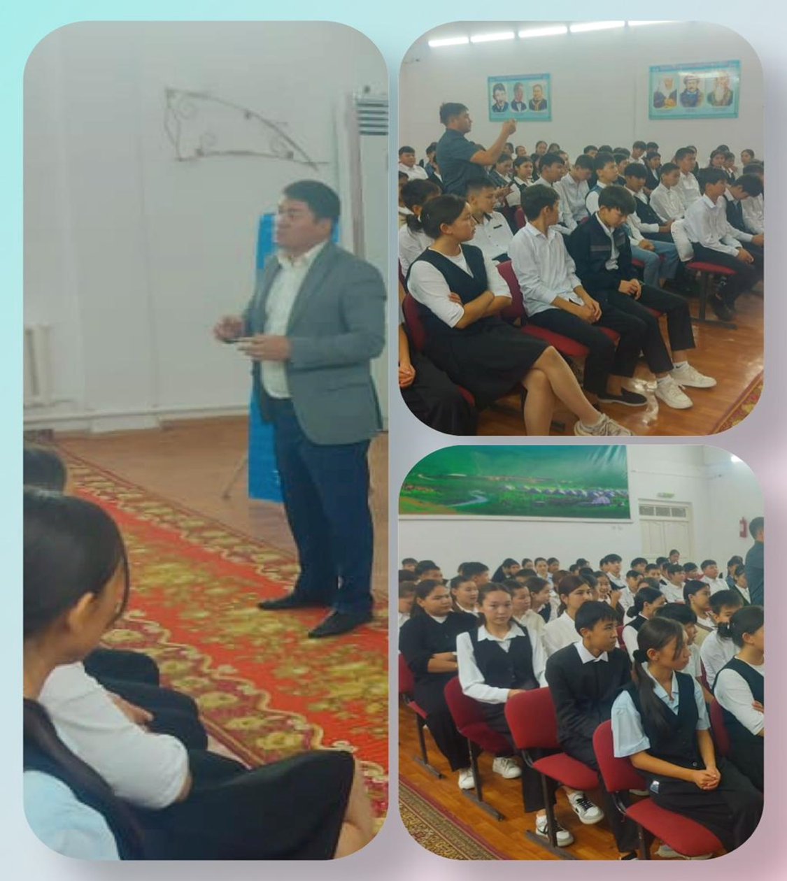 Түркістан қаласының білім бөлімі Түркістан қаласының әкімдігінің 27.09.2024 жылғы №40-03-01/4533 хатына сәйкес, «Шаңырақ» жастар мен жас отбасыларды қолдау орталығы қоғамдық бірлестігінің ұйымдастыруымен «Дін саласындағы тұрақтылықты қамтамасыз ету, діни экстремизмнің, теріс пиғылды діни ағымдардың алдын-алуға» бағытталған ақпараттық түсіндіру жұмыстары 01.10.2024 жыл күні кесте бойынша мектебімізде «Деструктивті діни ағымдардың алдын-алу» тақырыбында 9-10 сынып оқушыларымен кездесу өткізілді.