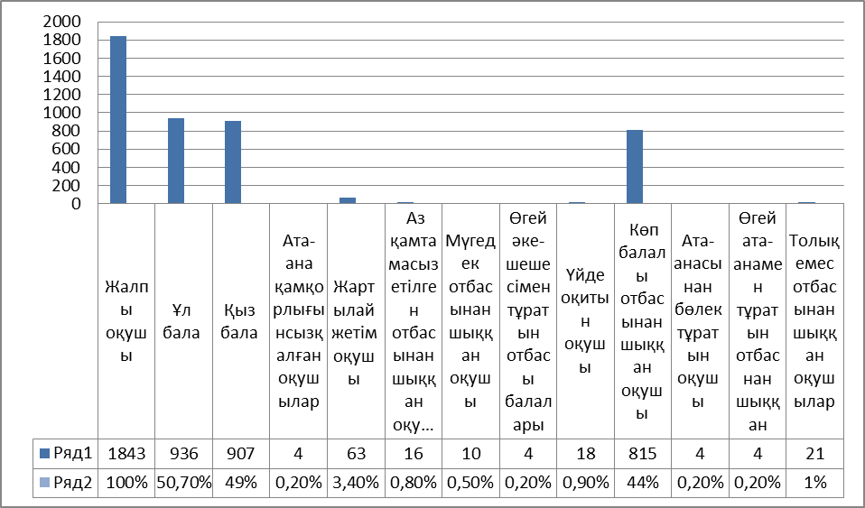 Көп балалы отбасынан шыққан оқушы | 815 | 44% | |